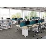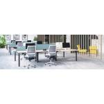 The Jemini Bench System Desking is ideal for offices where space is at a premium. Each bench desk has a tubular steel leg construction with an MFC finish floating top effect. The scalloped desktops allow for easy access to cables. Each single person desk measures 1400x1600x730mm.