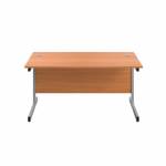 Suitable for use in a variety of office environments, this First Rectangular Cantilever Desk features a strong cantilever frame for support and stability. It features a 25mm thick desktop with dual 62mm cable management ports to keep workspaces tidy and free from wires. The desk includes a modesty panel as standard and is suitable for use with First Under Desk Pedestals.