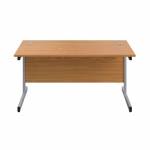 Suitable for use in a variety of office environments, this First Rectangular Cantilever Desk features a strong cantilever frame for support and stability. It features a 25mm thick desktop with dual 62mm cable management ports to keep workspaces tidy and free from wires. The desk includes a modesty panel as standard and is suitable for use with First Under Desk Pedestals.