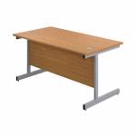 Suitable for use in a variety of office environments, this First Rectangular Cantilever Desk features a strong cantilever frame for support and stability. It features a 25mm thick desktop with dual 62mm cable management ports to keep workspaces tidy and free from wires. The desk includes a modesty panel as standard and is suitable for use with First Under Desk Pedestals.