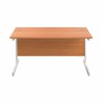 Suitable for use in a variety of office environments, this First Rectangular Cantilever Desk features a strong cantilever frame for support and stability. It features a 25mm thick desktop with dual 62mm cable management ports to keep workspaces tidy and free from wires. The desk includes a modesty panel as standard and is suitable for use with First Under Desk Pedestals.
