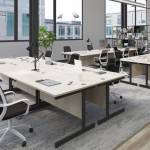 Suitable for use in a variety of office environments. This Jemini Rectangular Cantilever Desk features a strong cantilever frame for support and stability. The desk features a Top Thickness: 25mm with dual 62mm cable management ports to keep workspaces tidy and free from wires. The desk includes a modesty panel as standard and is suitable for use with Jemini Under Desk Pedestals.