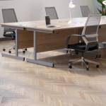 Suitable for use in a variety of office environments. This Jemini Rectangular Cantilever Desk features a strong cantilever frame for support and stability. The desk features a Top Thickness: 25mm with dual 62mm cable management ports to keep workspaces tidy and free from wires. The desk includes a modesty panel as standard and is suitable for use with Jemini Under Desk Pedestals.