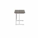 This Jemini Cantilever Desk features double upright legs for improved stability, with height adjustable feet up to 10mm. The 25mm thick MFC desktop features 2mm edge banding and 80mm dual cable management ports. Ideal for a variety of office environments.
