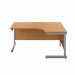 - Suitable for use in a variety of office environments, this First Radial Cantilever Desk features a strong cantilever frame for support and stability. The radial design offers easy working access to your computer, as well as ample additional desktop space. It features a 25mm thick desktop with dual 62mm cable management ports to keep workspaces tidy and free from wires. The desk includes a modesty panel as standard and is suitable for use with First Under Desk Pedestals.