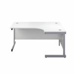 Suitable for use in a variety of office environments, this First Radial Cantilever Desk features a strong cantilever frame for support and stability. The radial design offers easy working access to your computer, as well as ample additional desktop space. It features a 25mm thick desktop with dual 62mm cable management ports to keep workspaces tidy and free from wires. The desk includes a modesty panel as standard and is suitable for use with First Under Desk Pedestals.