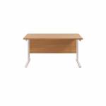 This Jemini Cantilever Desk features double upright legs for improved stability, with height adjustable feet up to 10mm. The 25mm thick MFC desktop features 2mm edge banding and 80mm dual cable management ports. Ideal for a variety of office environments.