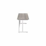This Jemini Cantilever Desk features double upright legs for improved stability, with height adjustable feet up to 10mm. The 25mm thick MFC desktop features 2mm edge banding and 80mm dual cable management ports. Ideal for a variety of office environments.