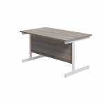 Jemini Single Rectangular Desk 1400x800x730mm Grey Oak/White KF801195