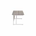 This Jemini Cantilever Desk features double upright legs for improved stability, with height adjustable feet up to 10mm. The 25mm thick MFC desktop features 2mm edge banding and 80mm dual cable management ports. Ideal for a variety of office environments.