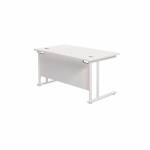 This Jemini Cantilever Desk features double upright legs for improved stability, with height adjustable feet up to 10mm. The 25mm thick MFC desktop features 2mm edge banding and 80mm dual cable management ports. Ideal for a variety of office environments.
