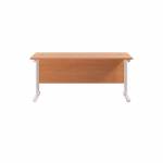 This Jemini Cantilever Desk features double upright legs for improved stability, with height adjustable feet up to 10mm. The 25mm thick MFC desktop features 2mm edge banding and 80mm dual cable management ports. Ideal for a variety of office environments.