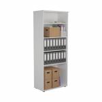 - This First Bookcase provides a convenient storage solution for organised office filing. Complete with four shelves, this bookcase is suitable for filing and storing lever arch and box files. The bookcase measures 800x450x2000mm and comes in a white finish to complement the First furniture range.