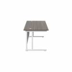 This Jemini Cantilever Desk features double upright legs for improved stability, with height adjustable feet up to 10mm. The 25mm thick MFC desktop features 2mm edge banding and 80mm dual cable management ports. Ideal for a variety of office environments.