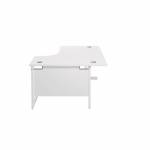 Suitable for use in a variety of office environments, this Jemini Radial Desk features a strong cantilever frame for support and stability. The radial design offers easy working access to your computer, as well as ample additional desktop space. It features a 25mm thick desktop with dual cable management ports to keep workspaces tidy and free from wires. The desk includes a modesty panel as standard and is suitable for use with Jemini Under Desk Pedestals.