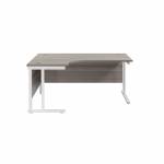 Suitable for use in a variety of office environments. This Jemini Cantilever Desk features double upright legs for improved stability, with height adjustable feet up to 10mm. The radial design offers easy working access to your computer, as well as ample additional desktop space. The 25mm thick MFC desktop features 2mm edge banding and 80mm dual cable management ports. The desk includes a modesty panel as standard and is suitable for use with Jemini Fixed Pedestals on the 800mm end.