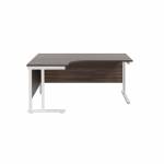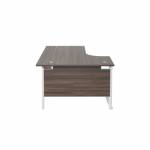 Suitable for use in a variety of office environments. This Jemini Cantilever Desk features double upright legs for improved stability, with height adjustable feet up to 10mm. The radial design offers easy working access to your computer, as well as ample additional desktop space. The 25mm thick MFC desktop features 2mm edge banding and 80mm dual cable management ports. The desk includes a modesty panel as standard and is suitable for use with Jemini Fixed Pedestals on the 800mm end.