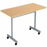 This Jemini Rectangular Tilting Table can be used individually or in groups in a configuration to suit you. The table features a 25mm desktop, silver legs and 4 locking castors for easy mobility. This rectangular table measures 1600x800x720mm.