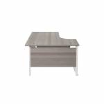 Suitable for use in a variety of office environments. This Jemini Cantilever Desk features double upright legs for improved stability, with height adjustable feet up to 10mm. The radial design offers easy working access to your computer, as well as ample additional desktop space. The 25mm thick MFC desktop features 2mm edge banding and 80mm dual cable management ports. The desk includes a modesty panel as standard and is suitable for use with Jemini Fixed Pedestals on the 800mm end.