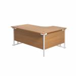 Suitable for use in a variety of office environments. This Jemini Cantilever Desk features double upright legs for improved stability, with height adjustable feet up to 10mm. The radial design offers easy working access to your computer, as well as ample additional desktop space. The 25mm thick MFC desktop features 2mm edge banding and 80mm dual cable management ports. The desk includes a modesty panel as standard and is suitable for use with Jemini Fixed Pedestals on the 800mm end.
