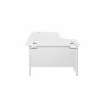 Suitable for use in a variety of office environments. This Jemini Cantilever Desk features double upright legs for improved stability, with height adjustable feet up to 10mm. The radial design offers easy working access to your computer, as well as ample additional desktop space. The 25mm thick MFC desktop features 2mm edge banding and 80mm dual cable management ports. The desk includes a modesty panel as standard and is suitable for use with Jemini Fixed Pedestals on the 800mm end.