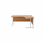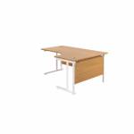 Suitable for use in a variety of office environments. This Jemini Cantilever Desk features double upright legs for improved stability, with height adjustable feet up to 10mm. The radial design offers easy working access to your computer, as well as ample additional desktop space. The 25mm thick MFC desktop features 2mm edge banding and 80mm dual cable management ports. The desk includes a modesty panel as standard and is suitable for use with Jemini Fixed Pedestals on the 800mm end.