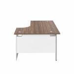 The Jemini Switch range combines traditional desking with contemporary styling, contrasting worktops with white panel end legs. Suitable for use in a variety of office environments, the desk includes a modesty panel as standard with dual 62mm cable management ports to keep worktops tidy. The radial design gives easy access to computers with increased worktop space.
