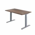 Jemini Sit/Stand Desk with Cable Ports 1200x800x630-1290mm Dark Walnut/Silver KF809692