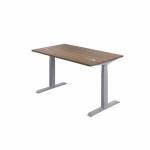 Jemini Sit/Stand Desk with Cable Ports 1400x800x630-1290mm Dark Walnut/Silver KF809814