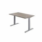 Jemini Sit/Stand Desk with Cable Ports 1400x800x630-1290mm Grey Oak/Silver KF809821