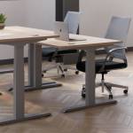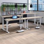 This Jemini Sit/Stand Desk features 3 stage height adjustability with a digital display and 4 pre-set buttons for an easy transition between sitting and standing. The 25mm thick desktop is mounted on sturdy cantilever legs and features dual cable management ports. This desk measures 1400x800x630-1290mm and comes with white legs.