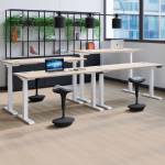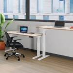 This Jemini Sit/Stand Desk features 3 stage height adjustability with a digital display and 4 pre-set buttons for an easy transition between sitting and standing. The 25mm thick desktop is mounted on sturdy cantilever legs and features dual cable management ports. This desk measures 1600x800x630-1290mm and comes with silver legs.