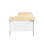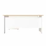 The Jemini Switch range combines traditional desking with contemporary styling, contrasting worktops with white panel end legs. Suitable for use in a variety of office environments, the desk includes a modesty panel as standard with dual 62mm cable management ports to keep worktops tidy. The radial design gives easy access to computers with increased worktop space.