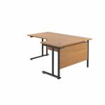 Suitable for a variety of office environments, these Jemini Double Right-Hand Radial Desks can be positioned together to create various configurations. Providing easy working access to a computer while offering ample desktop space, this desk features dual 80mm cable management ports to keep workspaces tidy and free from wires. The desk includes a modesty panel as standard and the double upright cantilever legs offer improved stability.