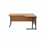 - Suitable for a variety of office environments, these Jemini Double Right-Hand Radial Desks can be positioned together to create various configurations. Providing easy working access to a computer while offering ample desktop space, this desk features dual 80mm cable management ports to keep workspaces tidy and free from wires. The desk includes a modesty panel as standard and the double upright cantilever legs offer improved stability.