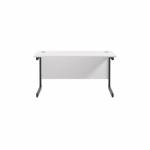 - A versatile, single upright desk, ideal for use in a variety of office environments. The Jemini rectangular desk features a strong cantilever frame a sturdy and stable workstation. Featuring a 25mm thick MFC desktop with a 2mm edge band. 80mm dual cable management ports to keep wires organised and tidy. The modesty panel is included as standard. This desk can accommodate a single pedestal beneath it.