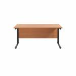 A versatile, single upright desk, ideal for use in a variety of office environments. The Jemini rectangular desk features a strong cantilever frame a sturdy and stable workstation. Featuring a 25mm thick MFC desktop with a 2mm edge band. 80mm dual cable management ports to keep wires organised and tidy. The modesty panel is included as standard. This desk can accommodate a fixed pedestal or a pedestal beneath it.