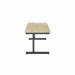 A versatile, single upright desk, ideal for use in a variety of office environments. The Jemini rectangular desk features a strong cantilever frame a sturdy and stable workstation. Featuring a 25mm thick MFC desktop with a 2mm edge band. 80mm dual cable management ports to keep wires organised and tidy. The modesty panel is included as standard. This desk can accommodate a fixed pedestal or a pedestal beneath it.