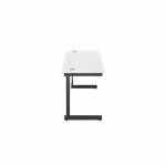 A versatile, single upright desk, ideal for use in a variety of office environments. The Jemini rectangular desk features a strong cantilever frame a sturdy and stable workstation. Featuring a 25mm thick MFC desktop with a 2mm edge band. 80mm dual cable management ports to keep wires organised and tidy. The modesty panel is included as standard. This desk can accommodate a single pedestal beneath it.