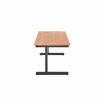 - A versatile, single upright desk, ideal for use in a variety of office environments. The Jemini rectangular desk features a strong cantilever frame a sturdy and stable workstation. Featuring a 25mm thick MFC desktop with a 2mm edge band. 80mm dual cable management ports to keep wires organised and tidy. The modesty panel is included as standard. This desk can accommodate a fixed pedestal or a pedestal beneath it.