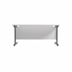 A versatile, single upright desk, ideal for use in a variety of office environments. The Jemini rectangular desk features a strong cantilever frame a sturdy and stable workstation. Featuring a 25mm thick MFC desktop with a 2mm edge band. 80mm dual cable management ports to keep wires organised and tidy. The modesty panel is included as standard. This desk can accommodate a fixed pedestal or a pedestal beneath it.
