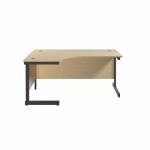 - A versatile, single upright radial desk, ideal for easy positioning of a PC as well as leaving ample desktop space, for use in a variety of office environments. The Jemini radial desk features a strong cantilever frame a sturdy and stable workstation. Featuring a 25mm thick MFC desktop with a 2mm edge band. 80mm dual cable management ports to keep wires organised and tidy. The modesty panel is included as standard. This desk can accommodate a single pedestal beneath it.