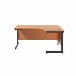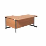 A versatile, single upright radial desk, ideal for easy positioning of a PC as well as leaving ample desktop space, for use in a variety of office environments. The Jemini radial desk features a strong cantilever frame a sturdy and stable workstation. Featuring a 25mm thick MFC desktop with a 2mm edge band. 80mm dual cable management ports to keep wires organised and tidy. The modesty panel is included as standard. This desk can accommodate a single pedestal beneath it.