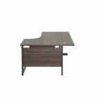A versatile, single upright radial desk, ideal for easy positioning of a PC as well as leaving ample desktop space, for use in a variety of office environments. The Jemini radial desk features a strong cantilever frame a sturdy and stable workstation. Featuring a 25mm thick MFC desktop with a 2mm edge band. 80mm dual cable management ports to keep wires organised and tidy. The modesty panel is included as standard. This desk can accommodate a single pedestal beneath it.