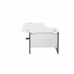A versatile, single upright radial desk, ideal for easy positioning of a PC as well as leaving ample desktop space, for use in a variety of office environments. The Jemini radial desk features a strong cantilever frame a sturdy and stable workstation. Featuring a 25mm thick MFC desktop with a 2mm edge band. 80mm dual cable management ports to keep wires organised and tidy. The modesty panel is included as standard. This desk can accommodate a single pedestal beneath it.