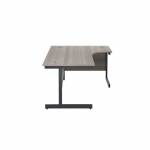 A versatile, single upright radial desk, ideal for easy positioning of a PC as well as leaving ample desktop space, for use in a variety of office environments. The Jemini radial desk features a strong cantilever frame a sturdy and stable workstation. Featuring a 25mm thick MFC desktop with a 2mm edge band. 80mm dual cable management ports to keep wires organised and tidy. The modesty panel is included as standard. This desk can accommodate a single pedestal beneath it.