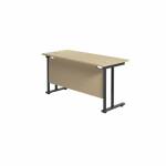 Suitable for use in a variety of office environments, this Jemini Double Upright Rectangular Desk features a 25mm thick desktop with dual 80mm cable management ports to keep workspaces tidy and free from wires. The desk includes a modesty panel as standard and the double upright cantilever legs offer improved stability.