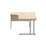 The Polaris Left Hand Radial Double Upright Cantilever Desk is a versatile workstation for use in a modern office environment. Featuring a strong cantilever frame for support and stability. The radial design offers easy working access to your computer, as well as ample additional desktop space. It features a 25mm thick desktop with dual cable management ports to keep workspaces tidy and free from wires. The desk includes a modesty panel as standard.