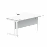 The Polaris Left Hand Radial Double Upright Cantilever Desk is a versatile workstation for use in a modern office environment. Featuring a strong cantilever frame for support and stability. The radial design offers easy working access to your computer, as well as ample additional desktop space. It features a 25mm thick desktop with dual cable management ports to keep workspaces tidy and free from wires. The desk includes a modesty panel as standard.