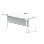 - The Polaris Right Hand Radial Double Upright Cantilever Desk is a versatile workstation for use in a modern office environment. Featuring a strong cantilever frame for support and stability. The radial design offers easy working access to your computer, as well as ample additional desktop space. It features a 25mm thick desktop with dual cable management ports to keep workspaces tidy and free from wires. The desk includes a modesty panel as standard.